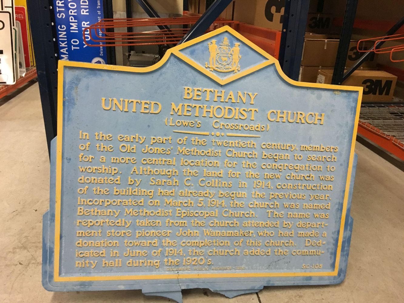 Historical markers are the property of the State of Delaware. Once installed, markers cannot be repaired, refurbished, or relocated without permission of the Delaware Public Archives. If you recognize that a historical marker needs attention, please submit a Marker Repair Form and/or contact the Historical Markers Program Coordinator.